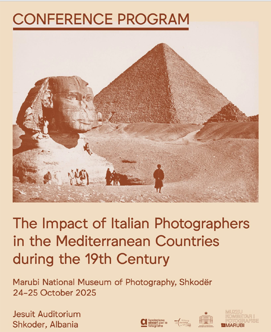 Scutari (Albania), dal 24 al 25ottobre2025 è in programma una conferenza sull’ Impatto dei fotografi italiani nei paesi del Mediterraneo durante il XIX° secolo al Museo Nazionale della fotografia “Marubi”. La conferenza avrà luogo presso l’Auditorium dei Gesuiti.