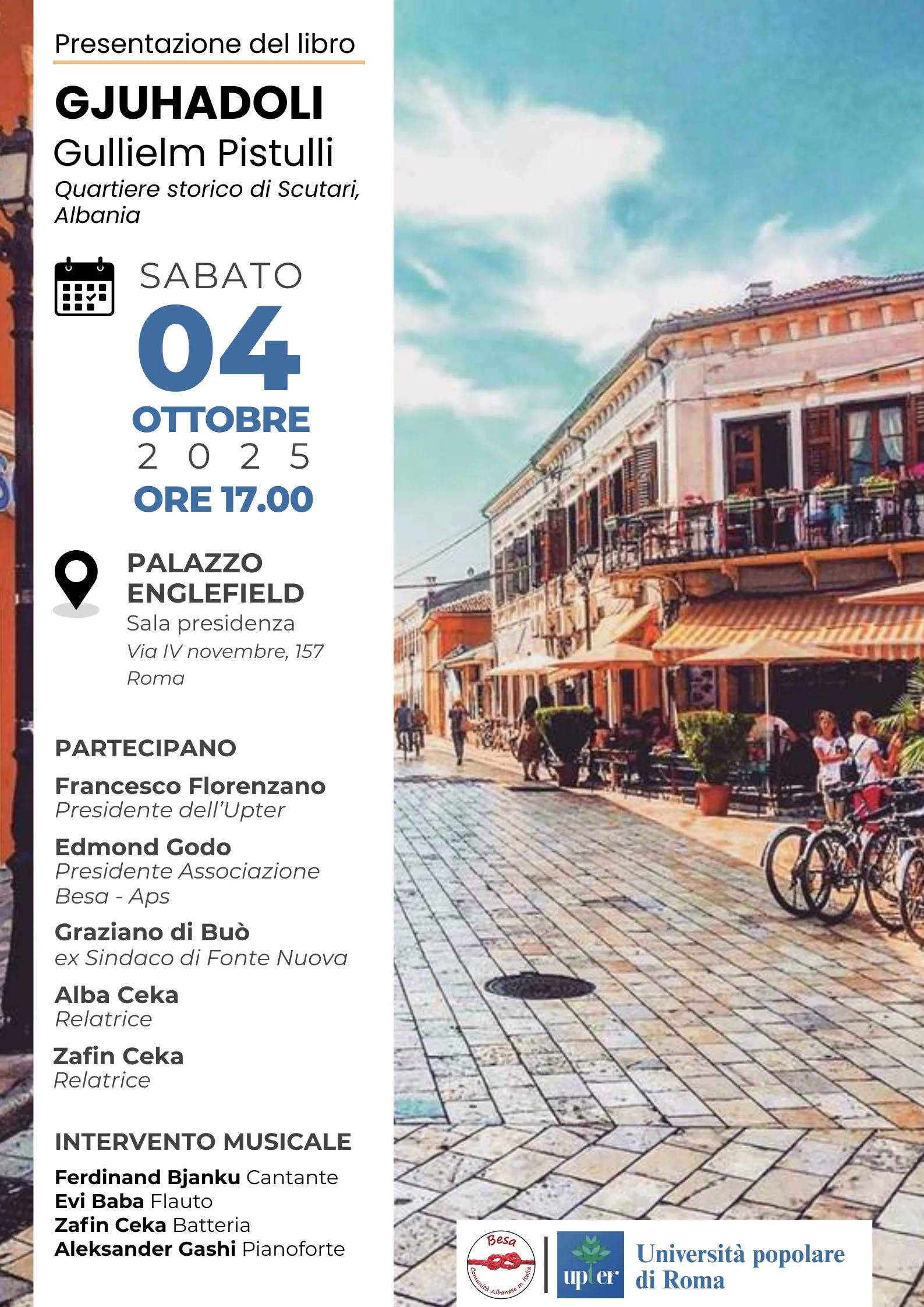 Scritto da Gullielm Pistulli, il libro verrà presentato Sabato 4 ottobre 2025 alle ore 17.00 presso la sede centrale Upter di Palazzo Engelfield Via Quattro Novembre, 157 – Roma.