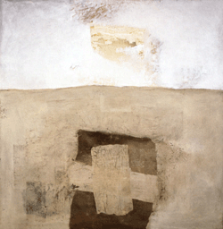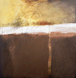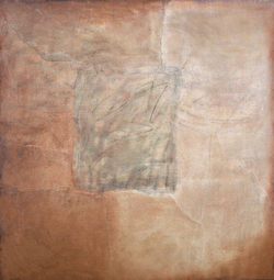Temo racchiude un intero universo adagiato strato dopo strato su carta strappata e incollata che poi si ricostituisce impercettibilmente riapparendo come segni. Come le pagine distese di un libro aperto, racchiudono una storia che non si svela fino a quando l’artista, sfogliando foglia dopo foglia di colori sovrapposti, svela il segreto dell’opera e il suo significato. Cercando il modo più adatto per esprimere la propria intenzione, Temo elabora un proprio linguaggio e nello stesso tempo ripercorre l’enigma della creazione. L’assenza e il silenzio del lavoro in corso vengono lentamente e pazientemente riempiti dal mormorio delle presenze, che a poco a poco trovano forma nello spazio e nel tempo dal pensiero e dai gesti dell’artista. Quando l’opera a tutte le apparenze è finita, nascosta sotto il suo velo di notte, deve essere letta e l’artista come primo lettore, sapendo che troverà i segni trasmessi attraverso i pigmenti, si applica alle rivelazioni a cui il suo atto di dipingere ha dato carne e immagine. Quanto ai lettori dell’ordine, si appropriano dell’opera attraverso uno sguardo più esterno, distaccato dall’intimità, dall’immediatezza e dalla concentrazione delle fasi della sua gestazione, giungono a sentire di riconoscere le impronte, schizzi di oggetti come assi, serrature, ecc,…in altre parole tutta una storia referenziale non per questo meno significativa. La materia della sua opera modella da sola i colori e gli strati per infonderli di vita, e nella profondità delle fantasie create, si aprono porte su un altro spazio-tempo tremante del canto del colore. È qui che la mano dell’artista si è prestata a un’ispirazione più insondabile. Tale è la qualità e la natura di questo dipinto che sembra non cercare altro che se stesso, e così facendo trova l’essenziale il nome occulto dell’Arte… . in altre parole tutta una storia referenziale non per questo meno significativa. La materia della sua opera modella da sola i colori e gli strati per infonderli di vita, e nella profondità delle fantasie create, si aprono porte su un altro spazio-tempo tremante del canto del colore. È qui che la mano dell’artista si è prestata a un’ispirazione più insondabile.